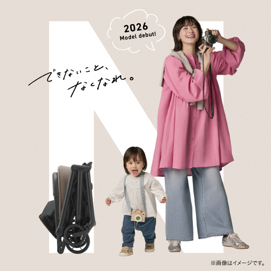 1カ月頃から使える、オートクローズ最小コンパクトベビーカー「auto N first」。