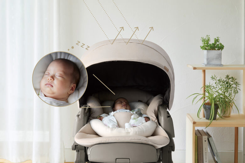 ※1 入眠するまでの平均時間(第51回日本母性衛生学会・学術集会抄録集より)※2 国内販売の乳幼児用ハイローラックにおいて(2025年9月時点 コンビ調べ)。