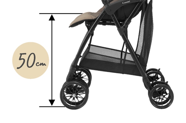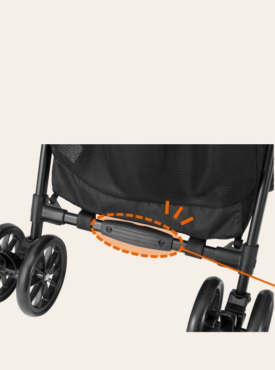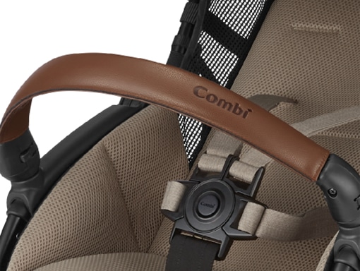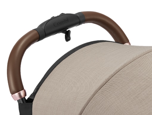 脇に抱えて、片手でラクに持ち運べるグリップを座面に搭載。グラつかずに安定してベビーカーが持てるので、階段もラクラクです。