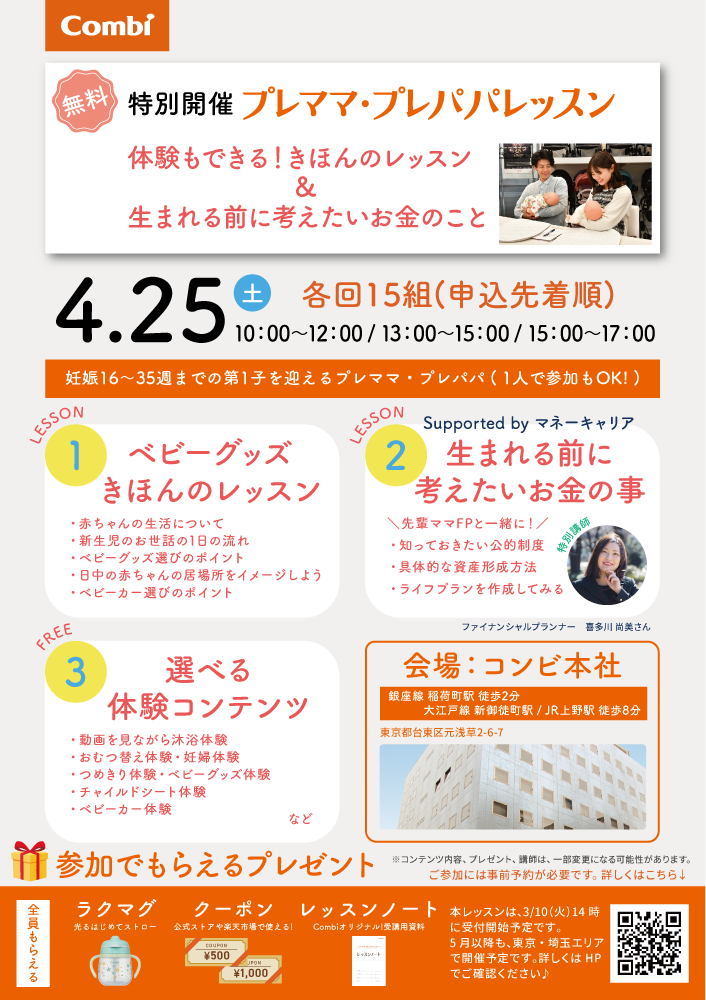 ※レッスンへのお申し込みをもって、「コンビ公式ブランドストア」の会員登録(無料)とさせていただきます。