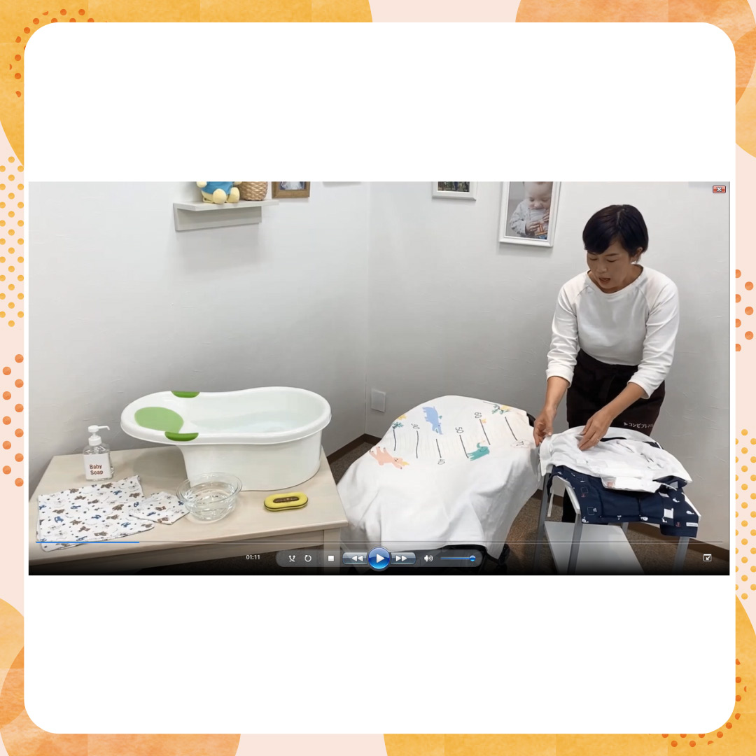 沐浴の手順です。ベビーバスや沐浴ガーゼ、ガーゼハンカチをお持ちの方は、ご準備ください。沐浴の準備や心構え等も知りたい方は、「沐浴_準備&心構え付き_ヨコ」の動画もご活用ください。