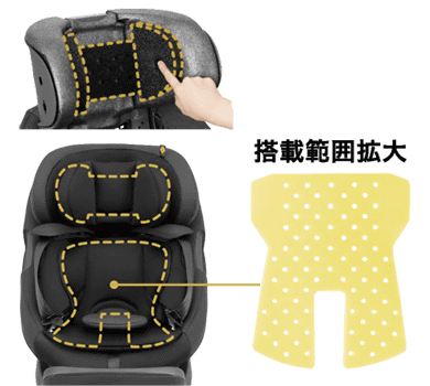 設置する車のシート形状により、実際の装着状態・角度などが画像と異なる場合があります。