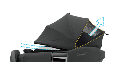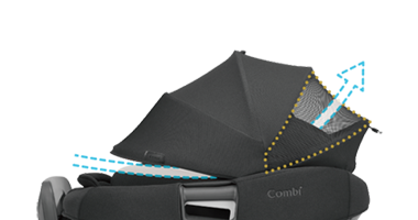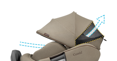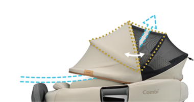 多層の衝撃吸収構造により、ヨコの衝撃からも赤ちゃんをしっかり包み込んで守ります。