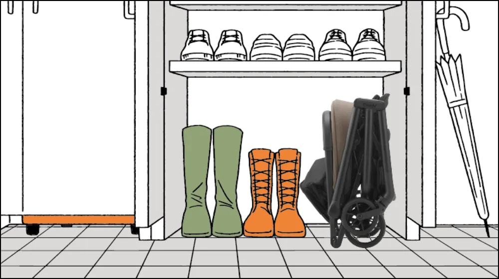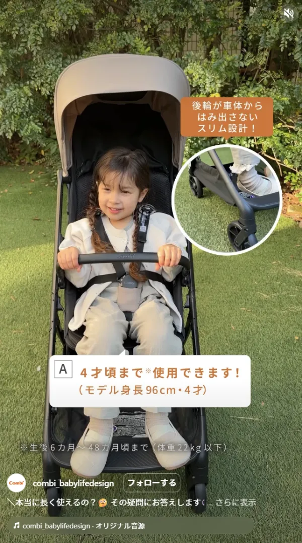 ※1 2024年~2026年2月に国内で販売されたオートクローズ機能搭載のEN基準適合ベビーカー商品群(小売り専売品を除く)における折りたたみ時の3辺合計最小値比較。(2026年2月時点 コンビ調べ) ※画像はイメージです