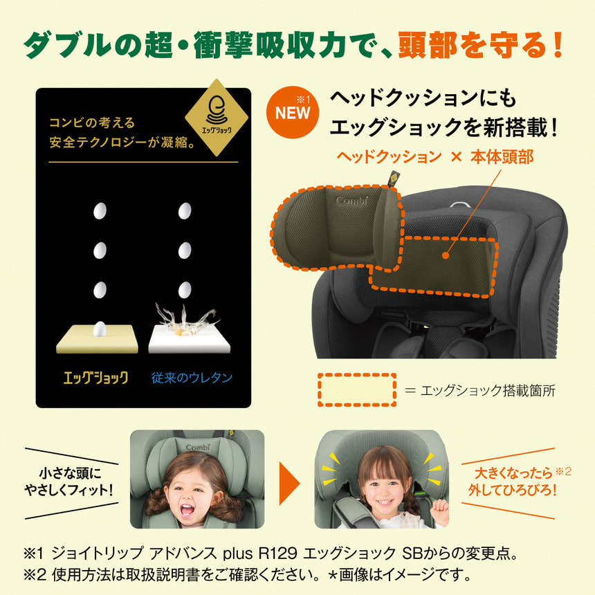 - 卵を落としても割れないほどの超・衝撃吸収素材「エッグショック」が産まれたての赤ちゃんの"やわらかい頭"を守ります。