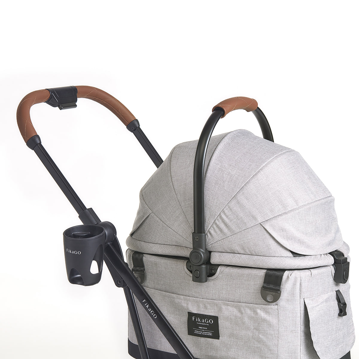 「FikaGO(フィカゴー)」シリーズ専用の純正カップホルダー。FikaGOすべてのペットカートに装着が可能です。 カップホルダーを装着したまま折りたたみができるので、折りたたみの際にも外す必要がありません。 上面直径約7.5cm(底面直径約6.5cm)までのカップやペットボトルなどを収納でき、カップホルダーの内側には飛び出し防止として機能するラバーフラップが付いているので、走行中も安心です。