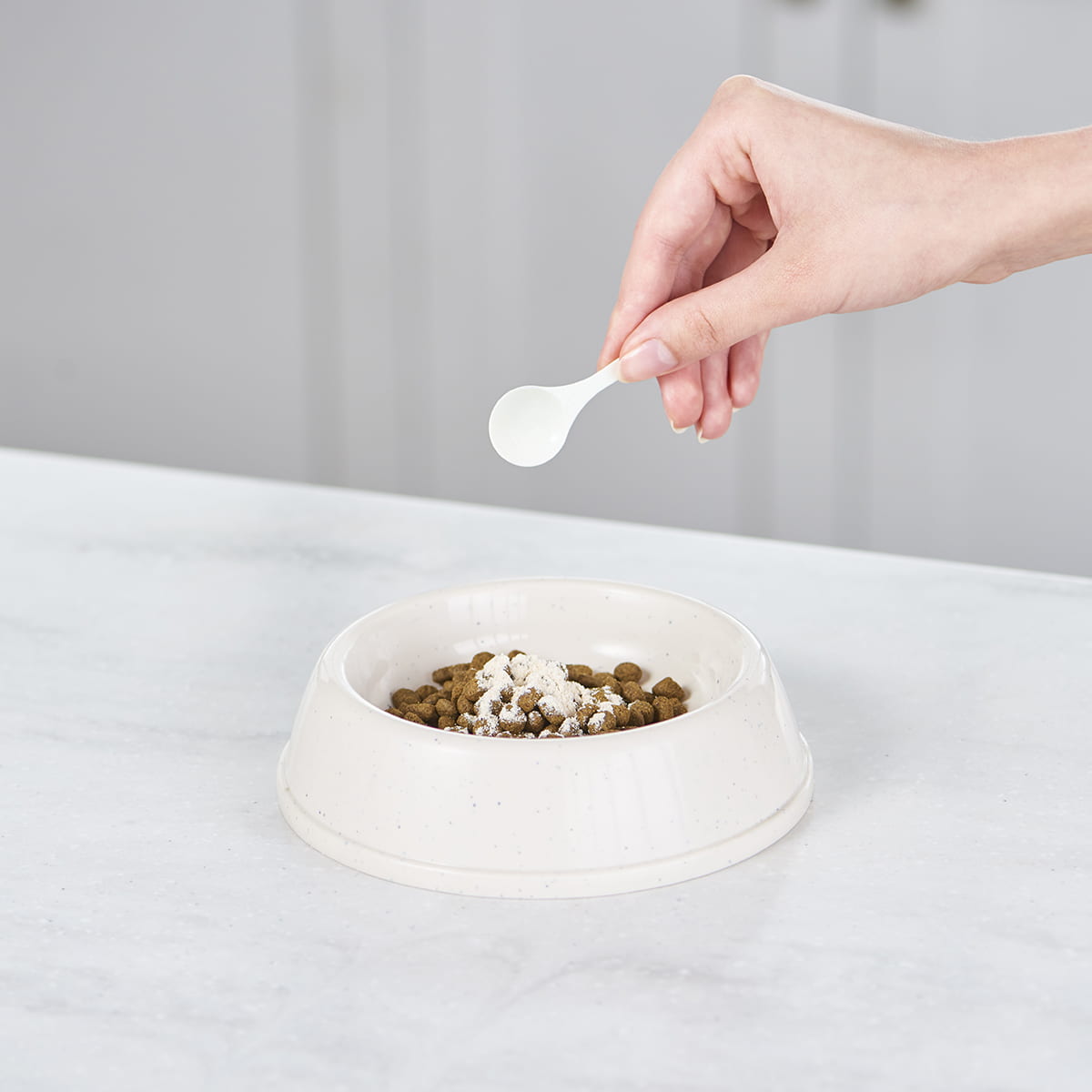 ハオーラプラスは、善玉菌5,000億個を含む8種類の有用成分でペットの健康維持をトータルサポート。いつものフードに1日1回振りかけて混ぜるだけ。水に混ぜて与えることもでき、手軽に与える事ができます。専用スプーン付き。