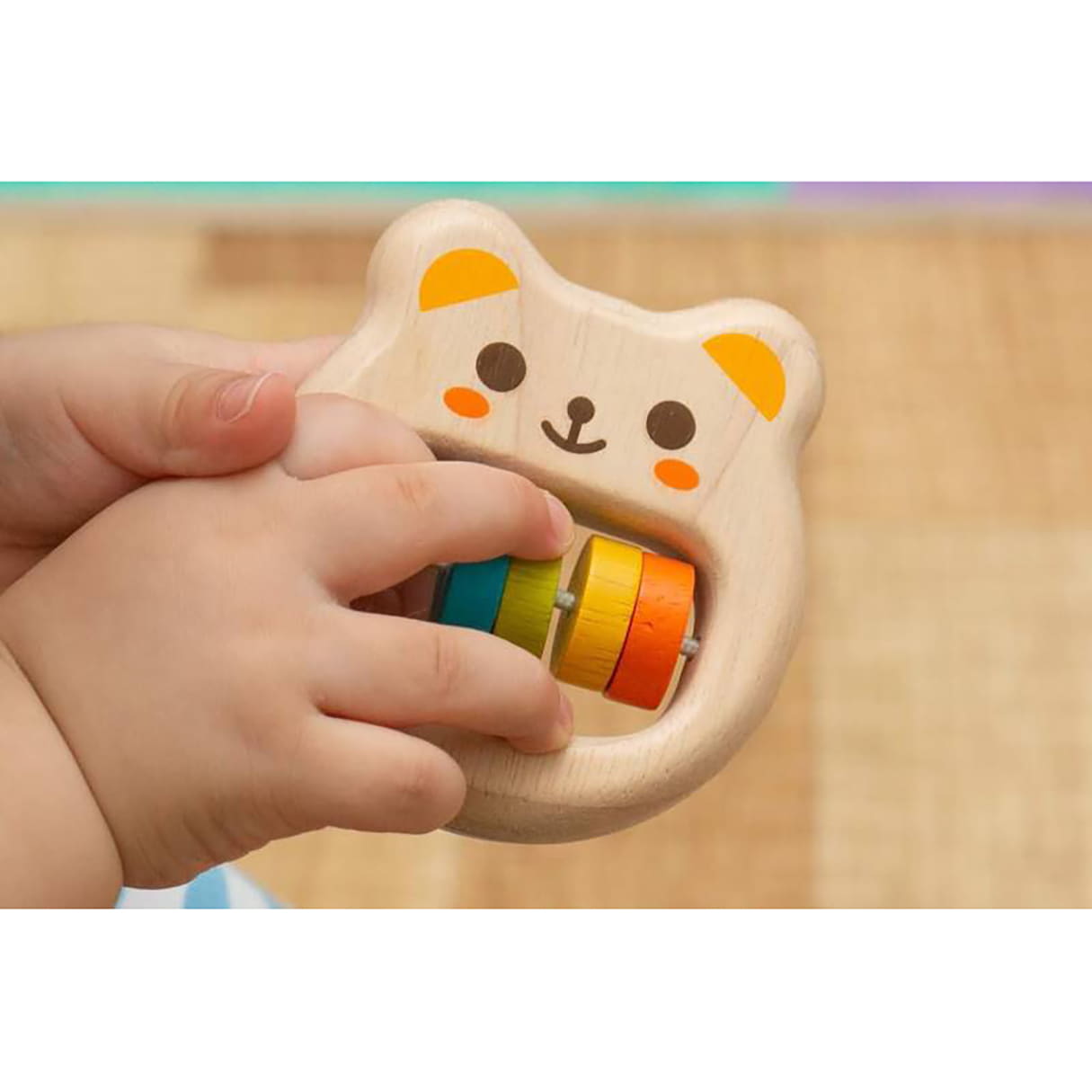 木のぬくもりを感じる、かわいいくまくんのラトルとクルマのお得なセット。
